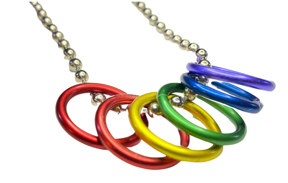 Creator and designer David Spada had a simple idea of 6 colored anodized aluminum rings on a necklace that sent the entire nation into haywire. Everyone had to have this trendy new fad that spoke with purpose. Many people still wear his jewelry as a symbol of freedom to this day.